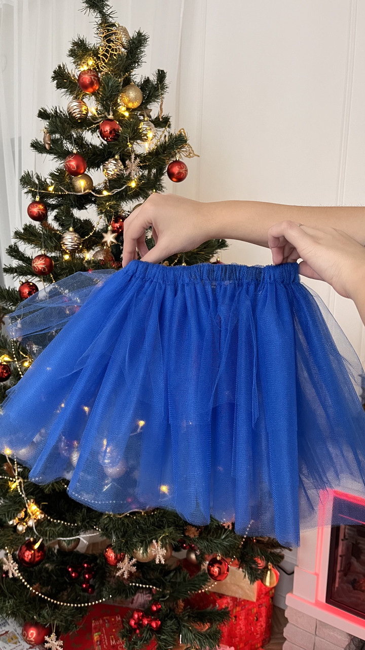 Синя дитяча спідниця-пачка підійде для дівчаток зростом від 86 до 146 см. Дитяча фатинова спідниця виконана з синього фатину в 6 шарів.